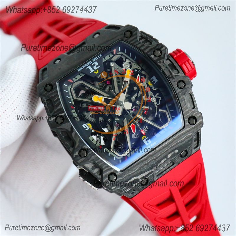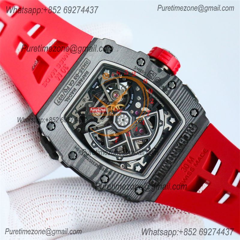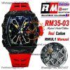 RM35-03 RMUL1 Autoamtic Mens Watch RMF Best Edition Black Carbon Skeleton Dial Red Rubber Strap CHS