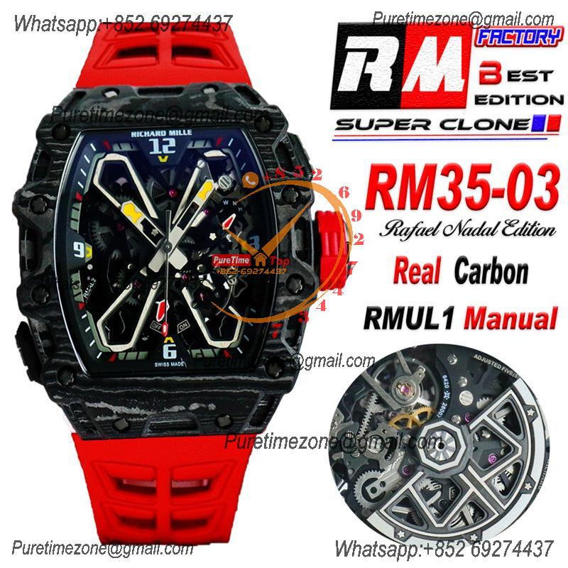 Home Richard Mille RM35-03 RMUL1 Autoamtic Mens Watch RMF Best Edition Black Carbon Skeleton Dial Red Rubber Strap CHS