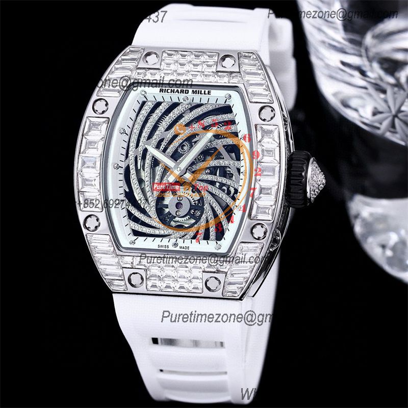RM51-02 Miyota Atuomatic Mens Watch RMF Diamond Twister Skeleton Dial White Rubber Strap CHS $675.00 $450.00