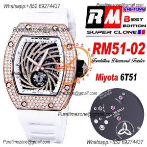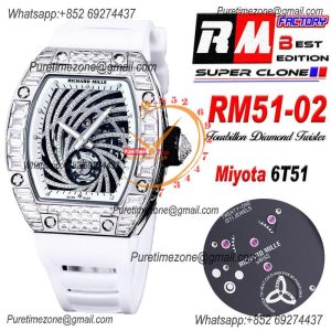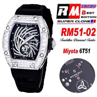 Home Richard Mille RM51-02 Miyota Atuomatic Mens Watch RMF Diamond Twister Skeleton Dial Black Rubber Strap CHS