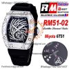 RM51-02 Miyota Atuomatic Mens Watch RMF Diamond Twister Skeleton Dial Black Rubber Strap CHS