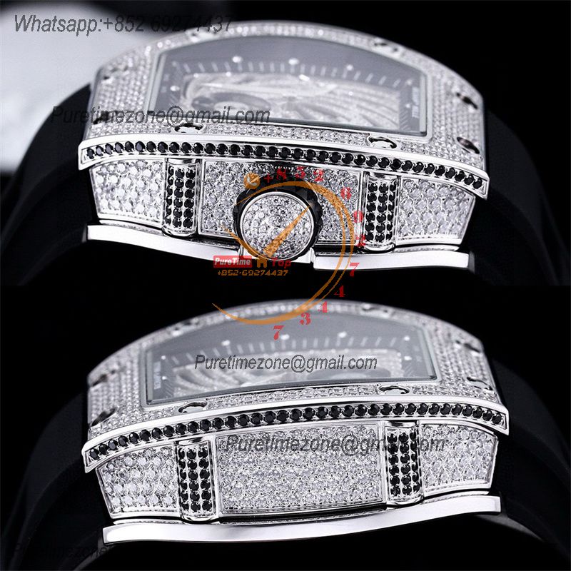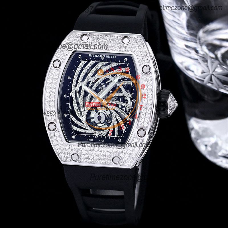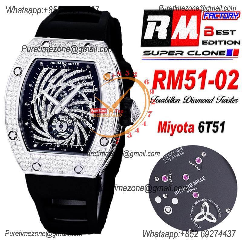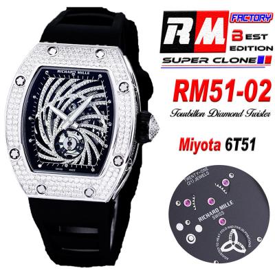 Home Richard Mille RM51-02 Miyota Atuomatic Mens Watch RMF Diamond Twister Skeleton Dial Black Rubber Strap CHS