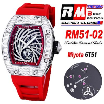 Home Richard Mille RM51-02 Miyota Atuomatic Mens Watch RMF Diamond Twister Skeleton Dial Red Rubber Strap CHS