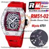 Home Richard Mille RM51-02 Miyota Atuomatic Mens Watch RMF Diamond Twister Skeleton Dial Red Rubber Strap CHS