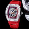 RM51-02 Miyota Atuomatic Mens Watch RMF Diamond Twister Skeleton Dial Red Rubber Strap CHS