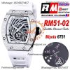 RM51-02 Miyota Atuomatic Mens Watch RMF Diamond Twister Skeleton Dial White Rubber Strap CHS