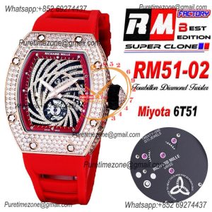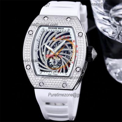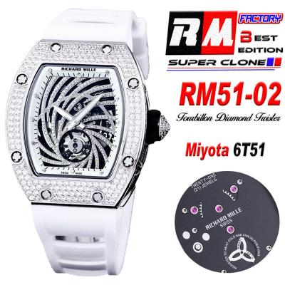 Home Richard Mille RM51-02 Miyota Atuomatic Mens Watch RMF Diamond Twister Skeleton Dial White Rubber Strap CHS
