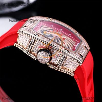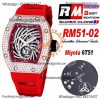 RM51-02 Miyota Atuomatic Mens Watch RMF RG Diamond Twister Skeleton Dial Red Rubber Strap CHS
