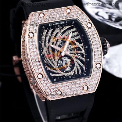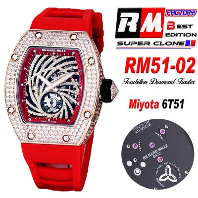 Home Richard Mille RM51-02 Miyota Atuomatic Mens Watch RMF RG Diamond Twister Skeleton Dial Red Rubber Strap CHS