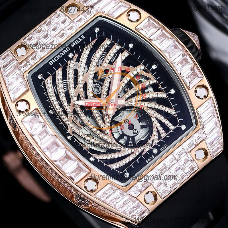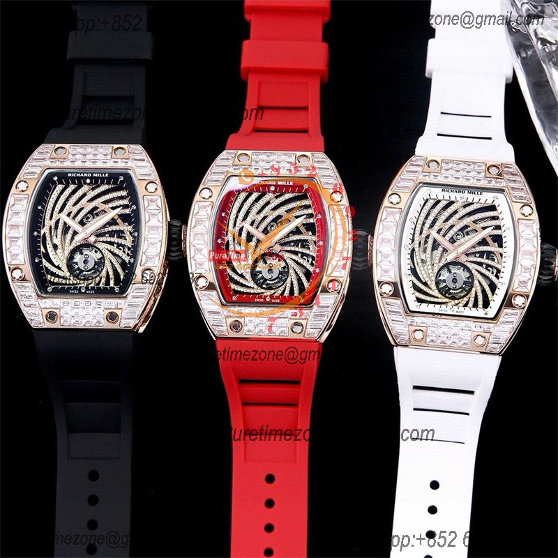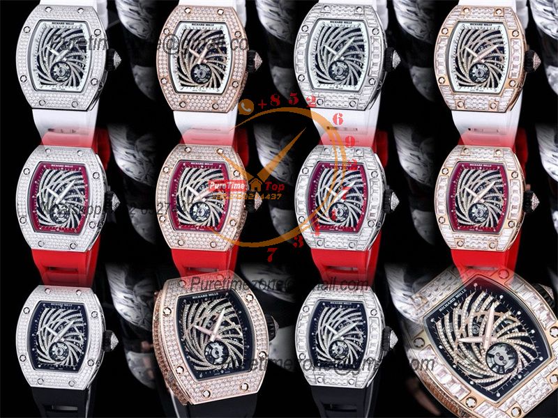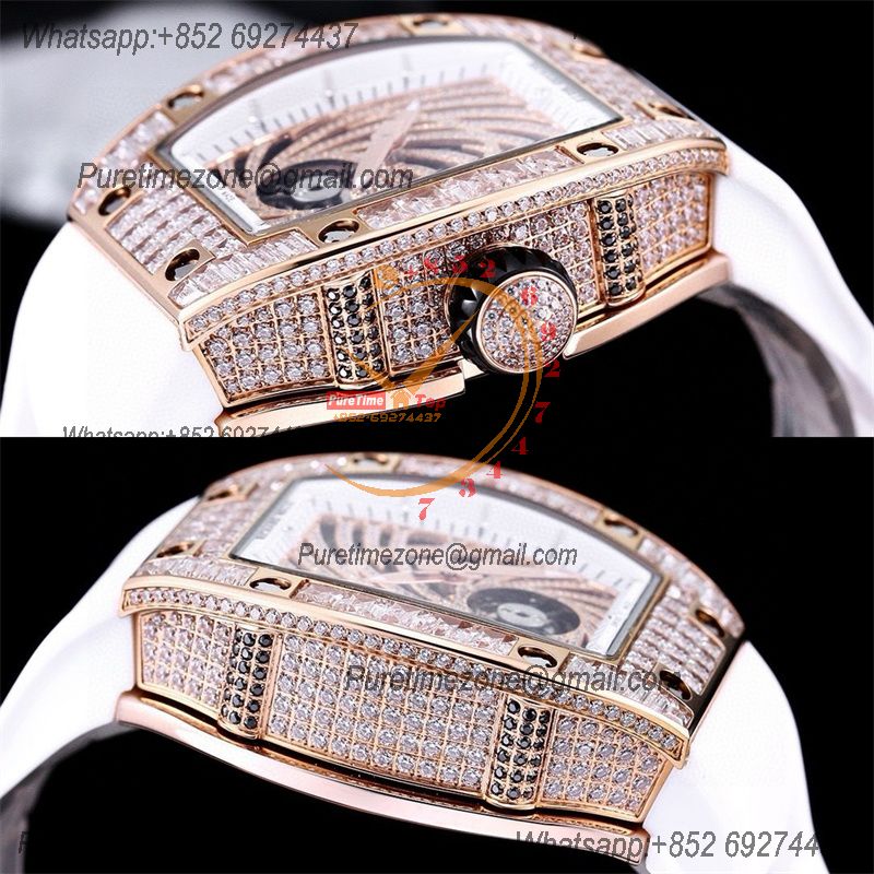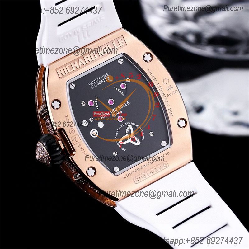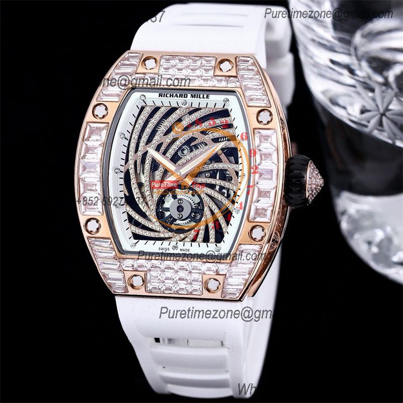 Home Richard Mille RM51-02 Miyota Atuomatic Mens Watch RMF RG Diamond Twister Skeleton Dial White Rubber Strap CHS