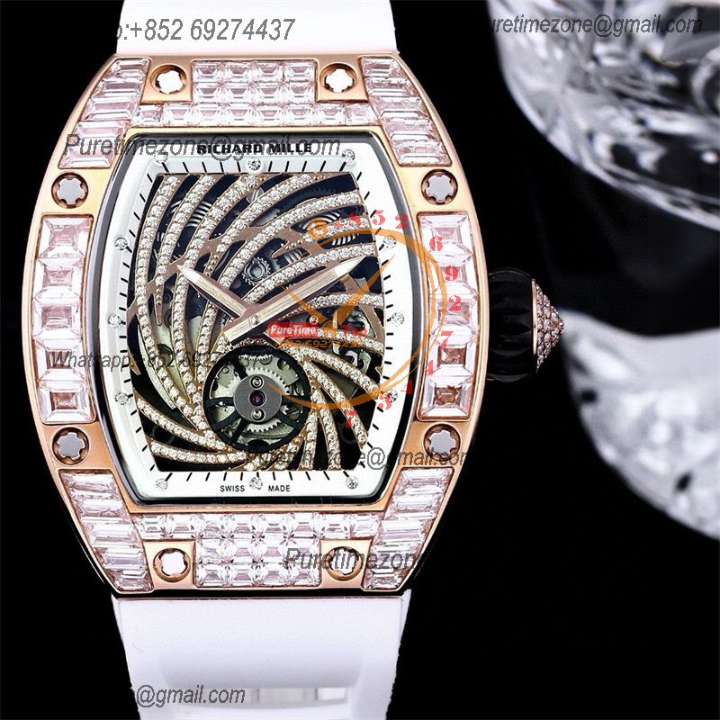 RM51-02 Miyota Atuomatic Mens Watch RMF RG Diamond Twister Skeleton Dial White Rubber Strap CHS
