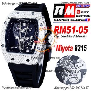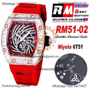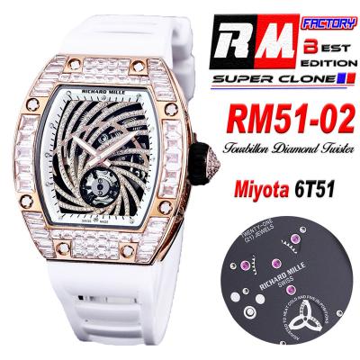 Home Richard Mille RM51-02 Miyota Atuomatic Mens Watch RMF RG Diamond Twister Skeleton Dial White Rubber Strap CHS