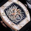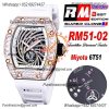 RM51-02 Miyota Atuomatic Mens Watch RMF RG Diamond Twister Skeleton Dial White Rubber Strap CHS
