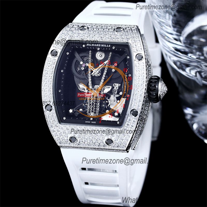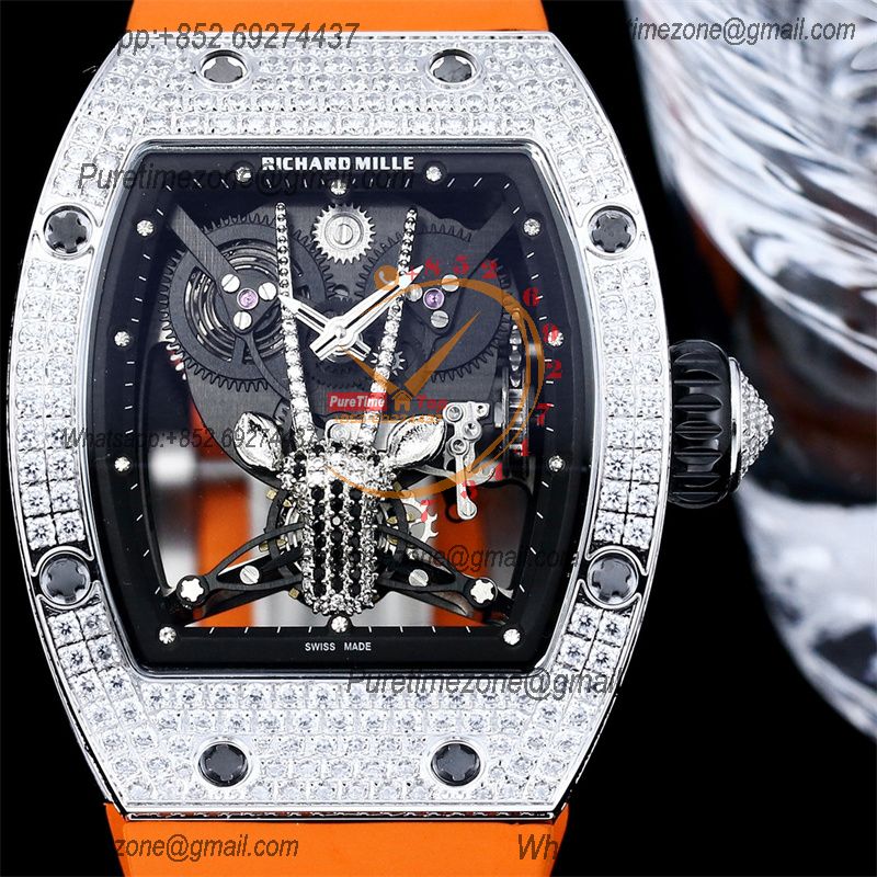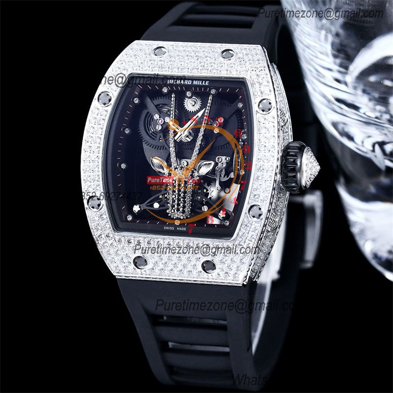 Home Richard Mille RM51-05 Miyota 8215 Atuomatic Mens Watch RMF Diamond Oryx Skeleton Dial Black Rubber Strap CHS