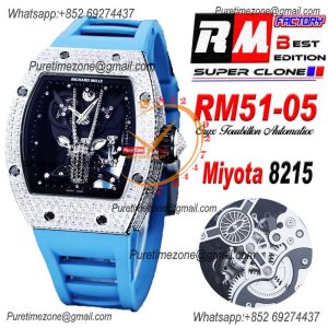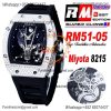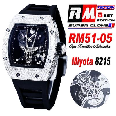 Home Richard Mille RM51-05 Miyota 8215 Atuomatic Mens Watch RMF Diamond Oryx Skeleton Dial Black Rubber Strap CHS