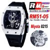 RM51-05 Miyota 8215 Atuomatic Mens Watch RMF Diamond Oryx Skeleton Dial Black Rubber Strap CHS