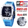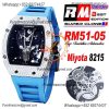 Home Richard Mille RM51-05 Miyota 8215 Atuomatic Mens Watch RMF Diamond Oryx Skeleton Dial Blue Rubber Strap CHS