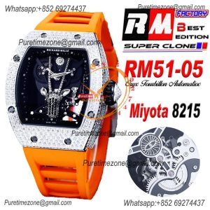 Home Richard Mille RM51-05 Miyota 8215 Atuomatic Mens Watch RMF Diamond Oryx Skeleton Dial Red Rubber Strap CHS