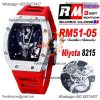 RM51-05 Miyota 8215 Atuomatic Mens Watch RMF Diamond Oryx Skeleton Dial Red Rubber Strap CHS