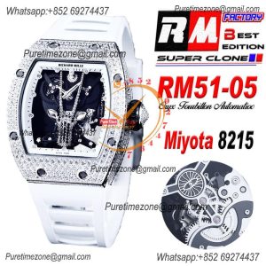 RM51-05 Miyota 8215 Atuomatic Mens Watch RMF Diamond Oryx Skeleton Dial White Rubber Strap CHS $675.00 $450.00