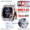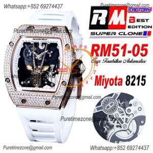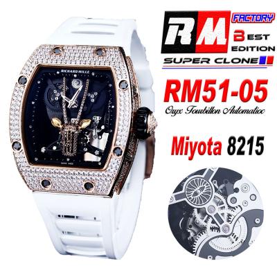 Home Richard Mille RM51-05 Miyota 8215 Atuomatic Mens Watch RMF RG Diamond Oryx Skeleton Dial White Rubber Strap CHS