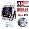 RM51-05 Miyota 8215 Atuomatic Mens Watch RMF RG Diamond Oryx Skeleton Dial White Rubber Strap CHS