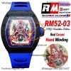 RM52-03 Real Tourbillon Hand Winding Mens Watch Best Edition RMF Black Ceramic Skeleton Dial Blue Rubber CHS