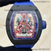 RM12-01 José Balvin Automatic Tourbillon Mens Watch RMF Black Carbon Fiber Skeleton Dial Blue Rubber Strap CHS AAA