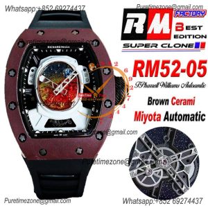 RM52-05 Pharrell Williams Miyota 8215 Atuomatic Mens Watch RMF Brown Ceramic Skeleton Dial Black Rubber CHS $735.00 $490.00