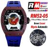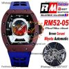 Home Richard Mille RM52-05 Pharrell Williams Miyota 8215 Atuomatic Mens Watch RMF Brown Ceramic Skeleton Dial Blue Rubber CHS