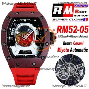 RM52-05 Pharrell Williams Miyota 8215 Atuomatic Mens Watch RMF Brown Ceramic Skeleton Dial Red Rubber CHS $735.00 $490.00