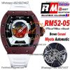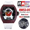RM52-05 Pharrell Williams Miyota 8215 Atuomatic Mens Watch RMF Brown Ceramic Skeleton Dial White Rubber CHS