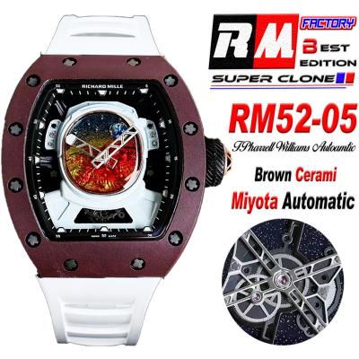 Home Richard Mille RM52-05 Pharrell Williams Miyota 8215 Atuomatic Mens Watch RMF Brown Ceramic Skeleton Dial White Rubber CHS