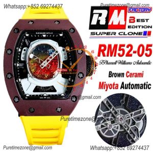 RM52-05 Pharrell Williams Miyota 8215 Atuomatic Mens Watch RMF Brown Ceramic Skeleton Dial Yellow Rubber CHS $735.00 $490.00