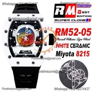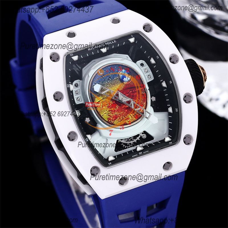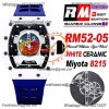 RM52-05 Pharrell Williams Miyota 8215 Atuomatic Mens Watch RMF Ceramic Skeleton Dial Blue Rubber CHS