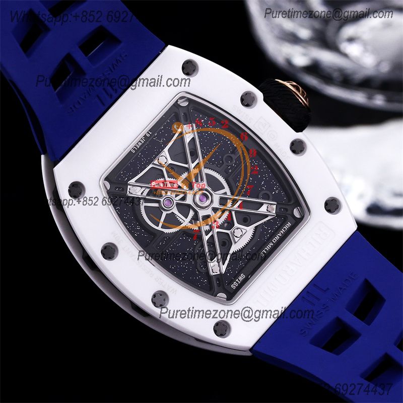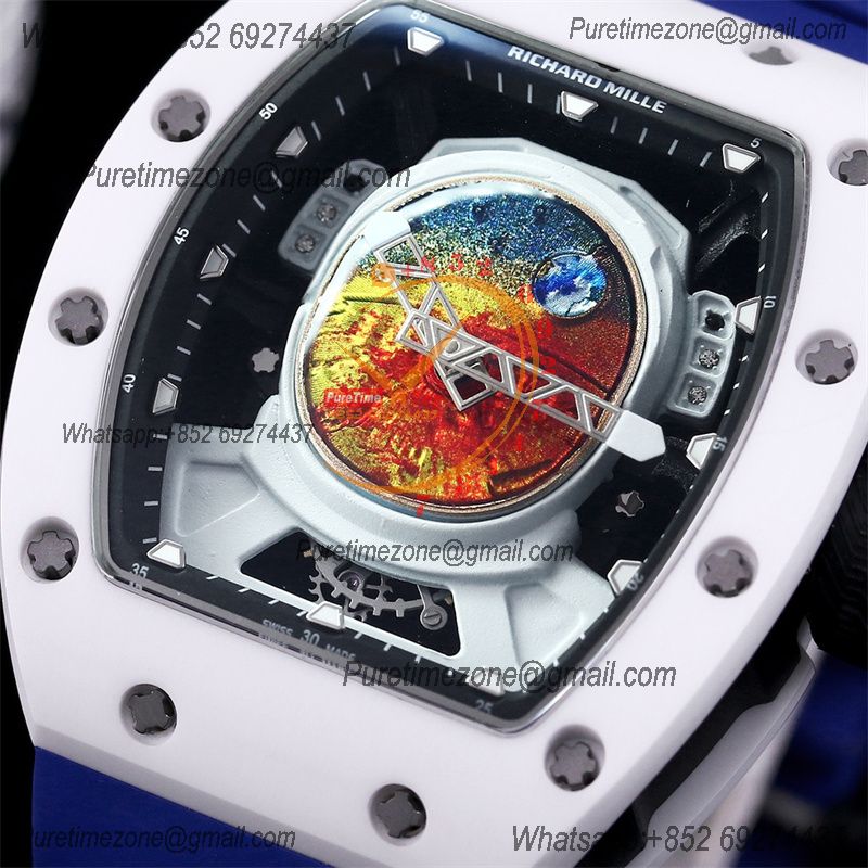 Home Richard Mille RM52-05 Pharrell Williams Miyota 8215 Atuomatic Mens Watch RMF Ceramic Skeleton Dial Blue Rubber CHS
