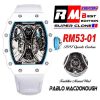 Home Richard Mille RM53-01 Pablo MacDonough Manual Wind Real Tourbillon Mens Watch RMF Best Edition Carbon Fiber All White Nylon CHS