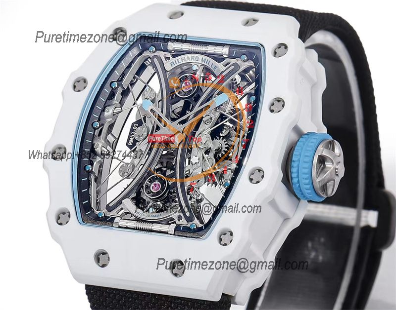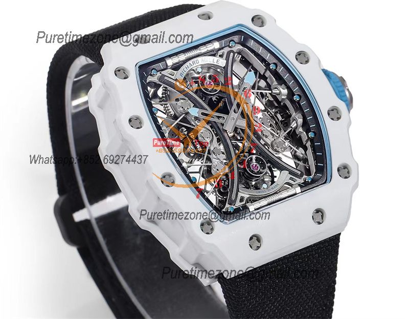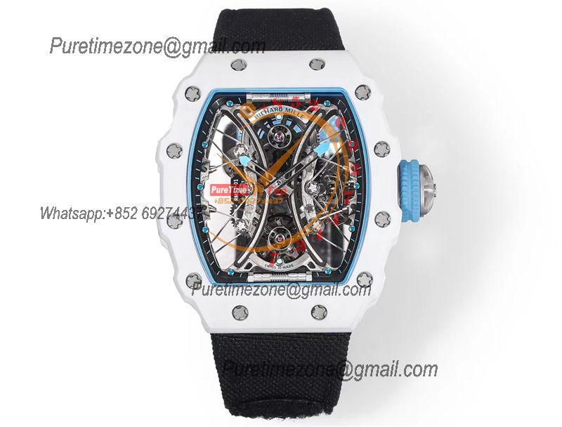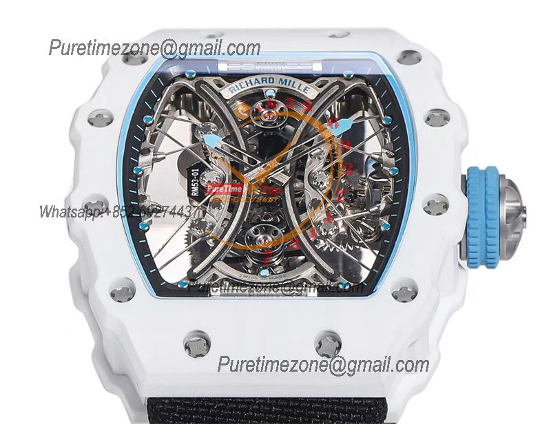 RM53-01 Pablo MacDonough Manual Wind Real Tourbillon Mens Watch RMF Best Edition White Carbon Fiber Black Nylon CHS