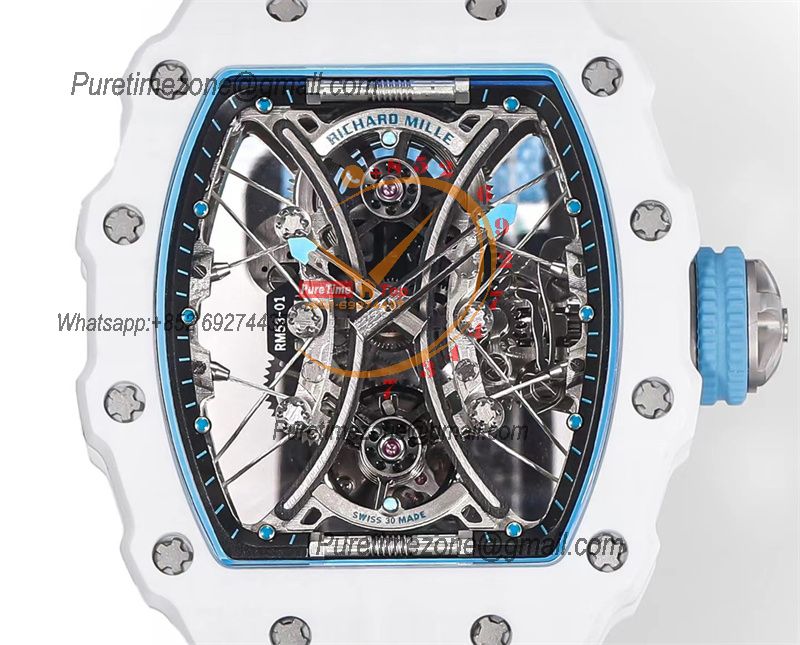 RM27-05 Flying Tourbillon Rafael Nadal White Carbon Automatic Mens Watch RMF Best Edition Black Skeleton Dial Lightweigh