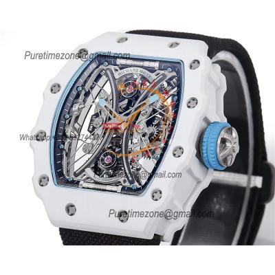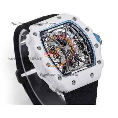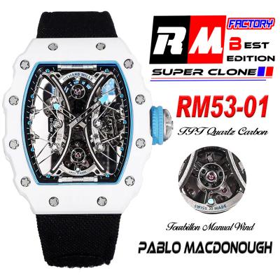 RM53-01 Pablo MacDonough Manual Wind Real Tourbillon Mens Watch RMF Best Edition White Carbon Fiber Black Nylon CHS