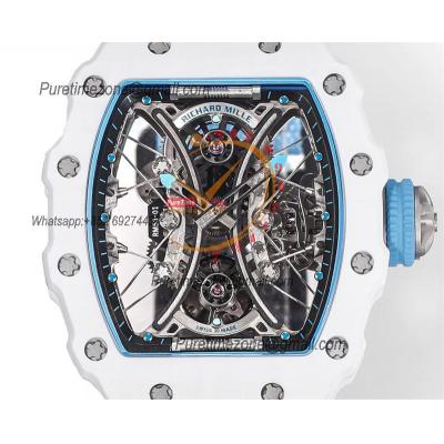 RM27-05 Flying Tourbillon Rafael Nadal White Carbon Automatic Mens Watch RMF Best Edition Black Skeleton Dial Lightweigh