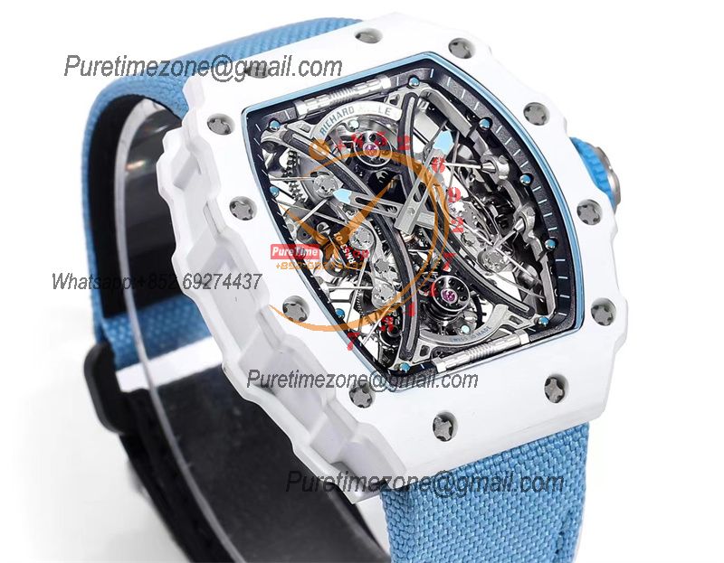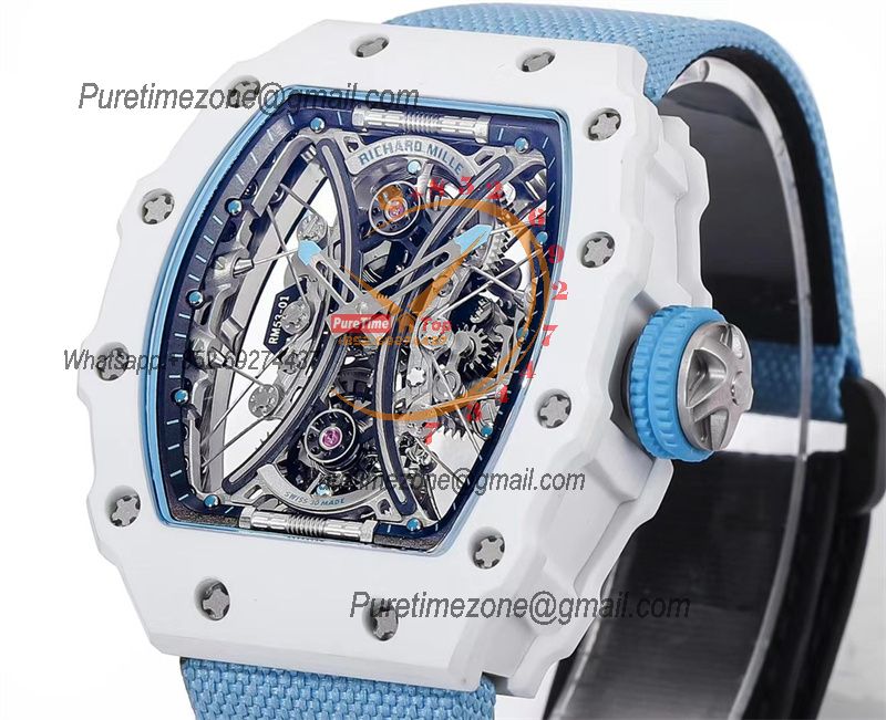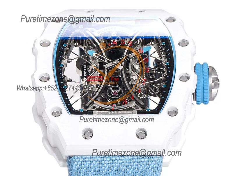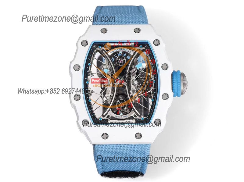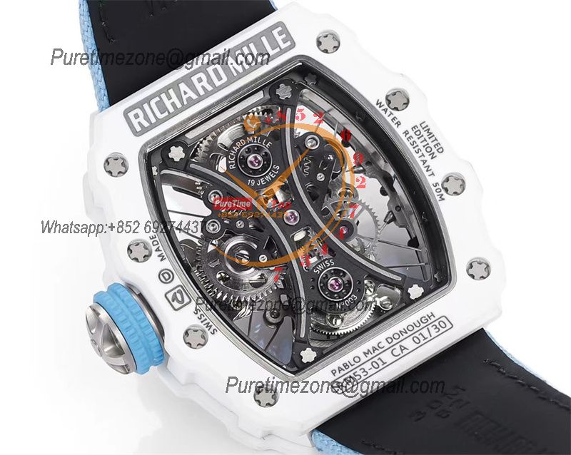 RM53-01 Pablo MacDonough Manual Wind Real Tourbillon Mens Watch RMF Best Edition White Carbon Fiber Blue Nylon CHS