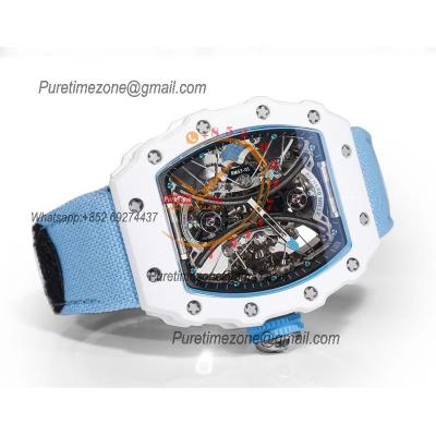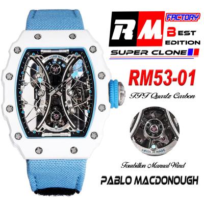 RM53-01 Pablo MacDonough Manual Wind Real Tourbillon Mens Watch RMF Best Edition White Carbon Fiber Blue Nylon CHS