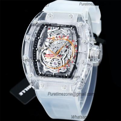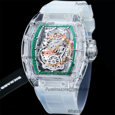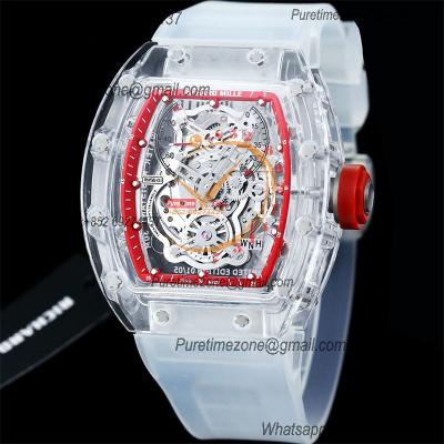 RM56-01 Transparent Tourbillon Miyota Automatic Mnes Watch RMF Red Skeleton Dial Transparent Rubber CHS