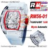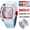 RM56-01 Transparent Tourbillon Miyota Automatic Mnes Watch RMF Red Skeleton Dial Transparent Rubber CHS