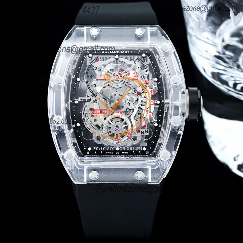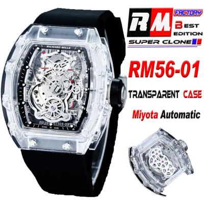 Home Richard Mille RM56-01 Transparent Tourbillon Miyota Automatic Mnes Watch RMF Skeleton Dial Black Rubber Strap CHS