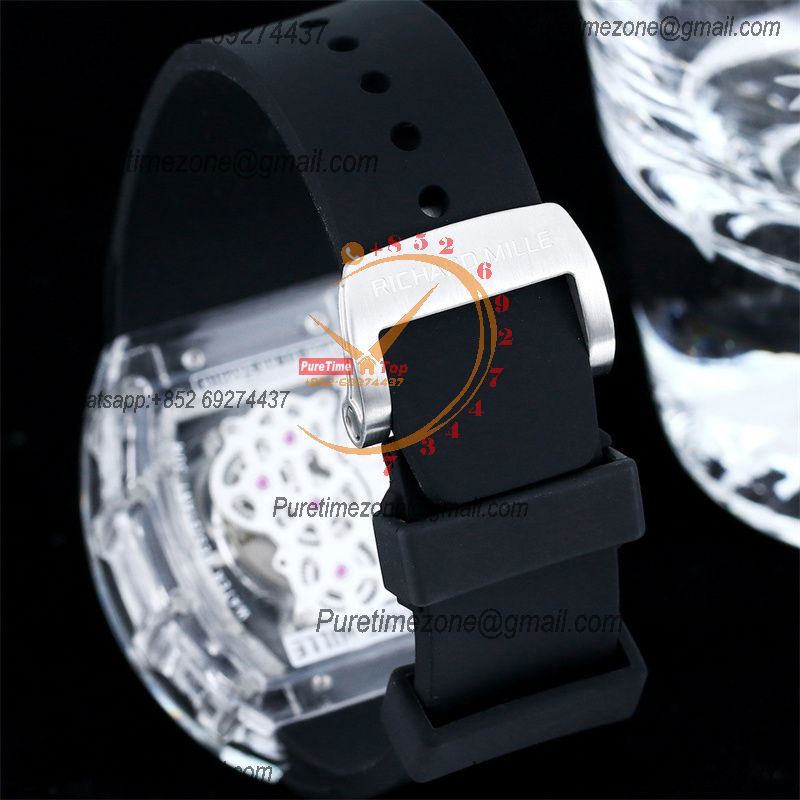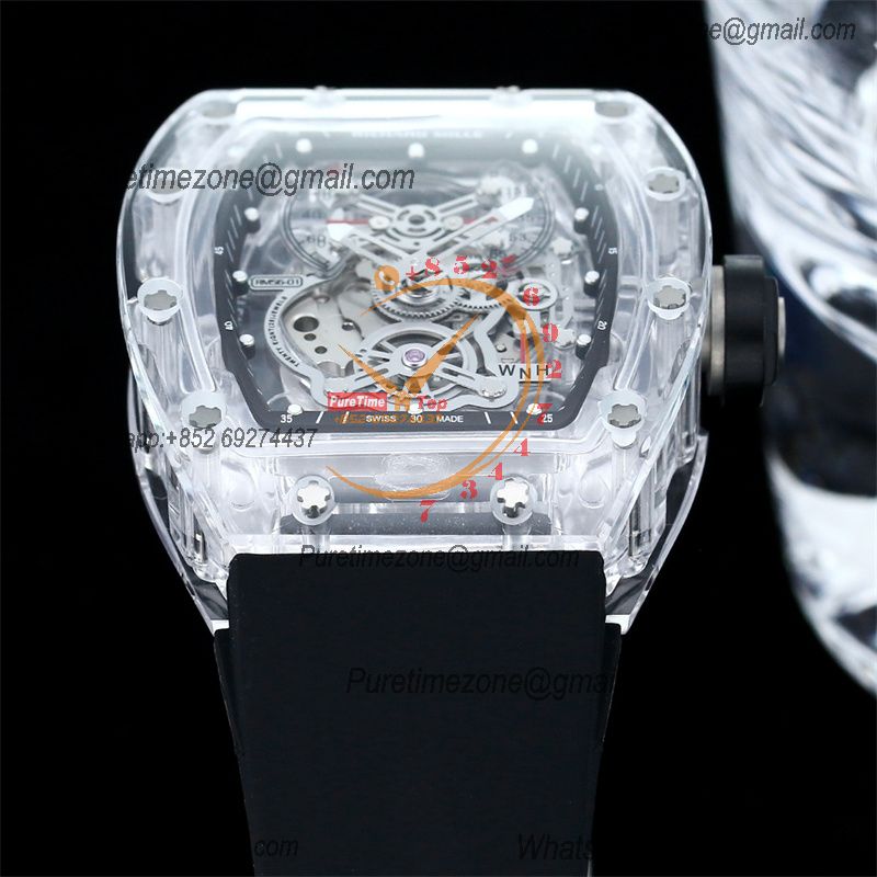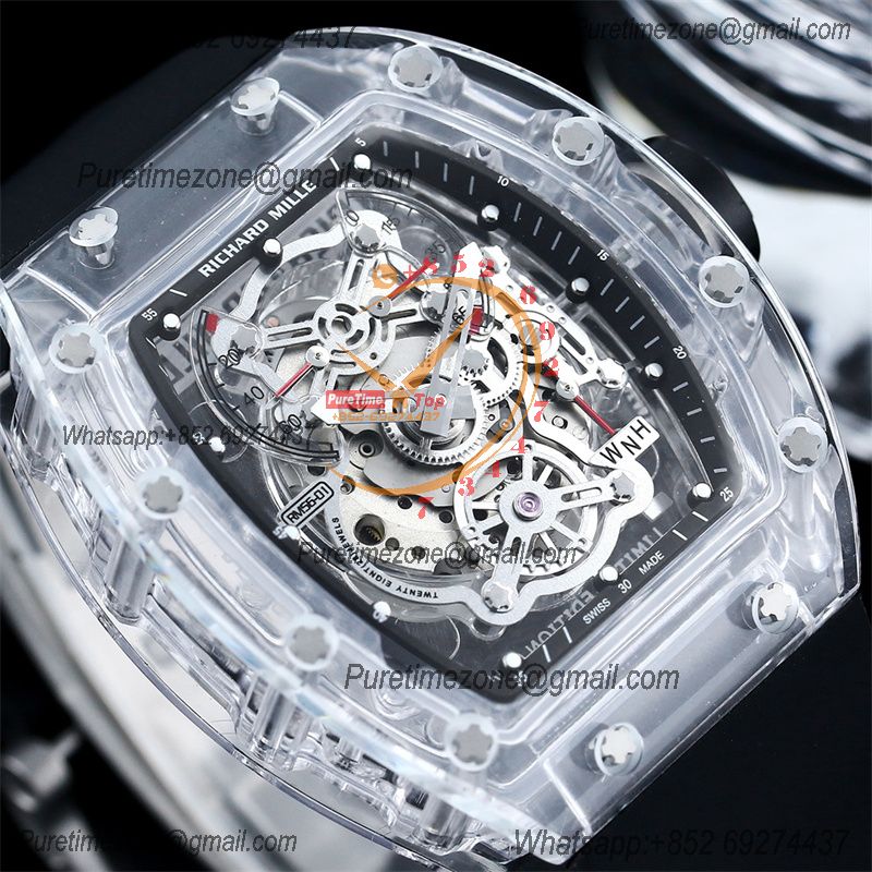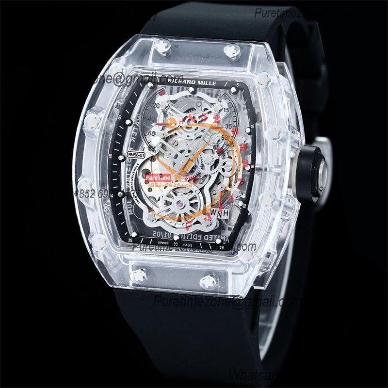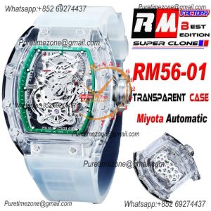 RM56-01 Transparent Tourbillon Miyota Automatic Mnes Watch RMF Skeleton Dial Black Rubber Strap CHS