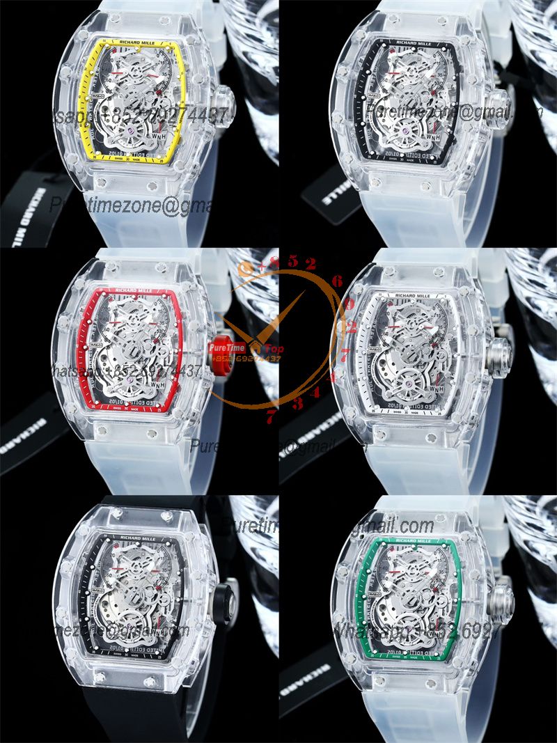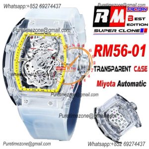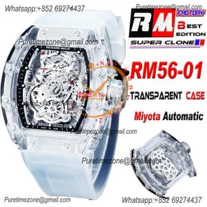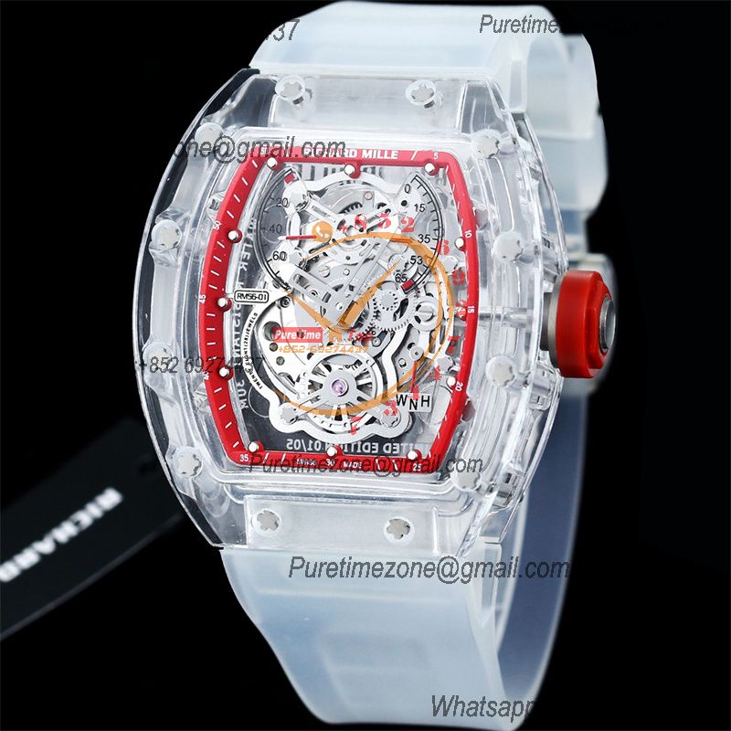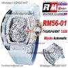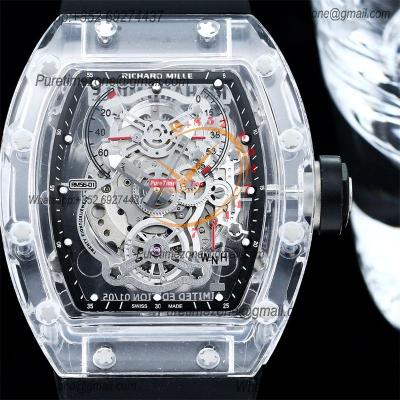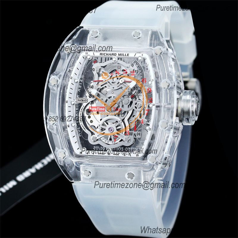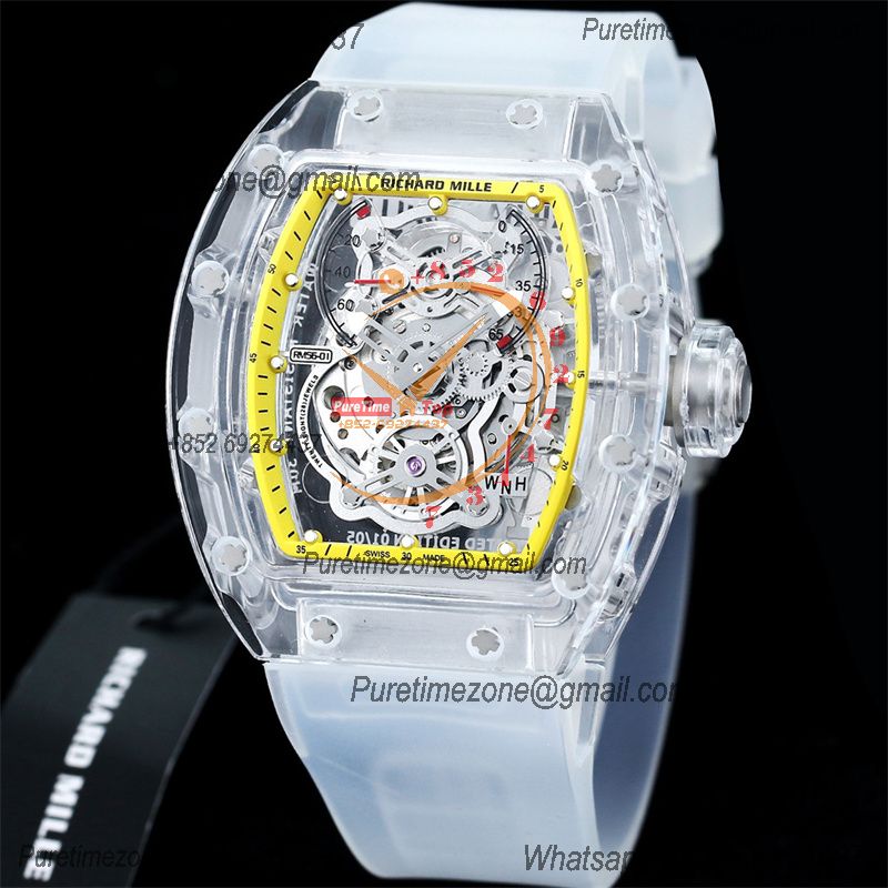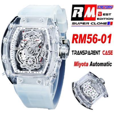 RM56-01 Transparent Tourbillon Miyota Automatic Mnes Watch RMF White Skeleton Dial Transparent Rubber CHS