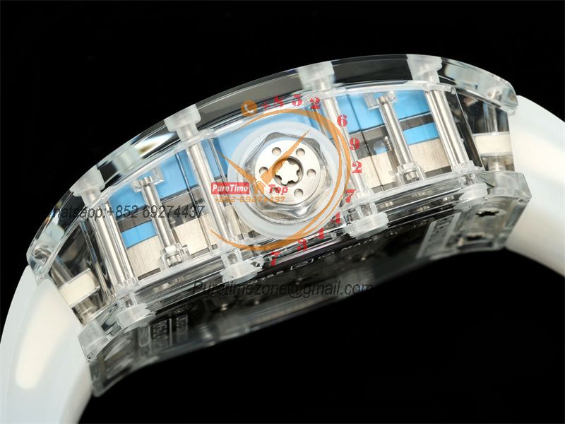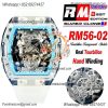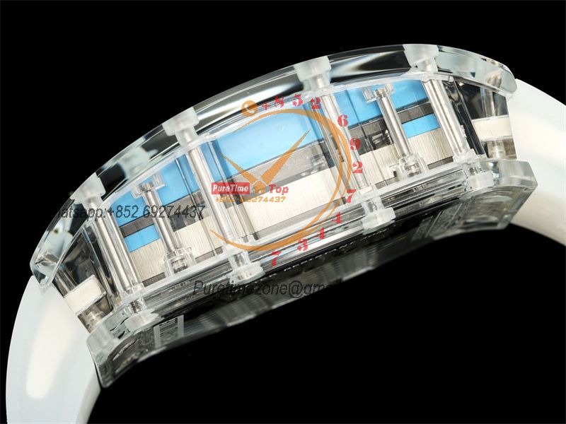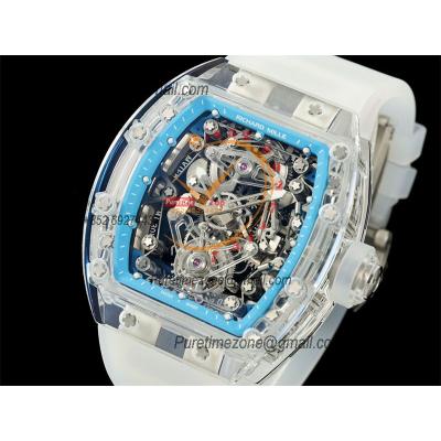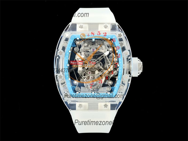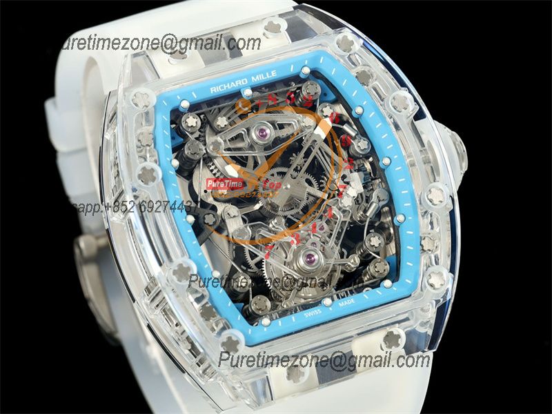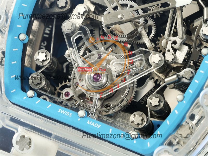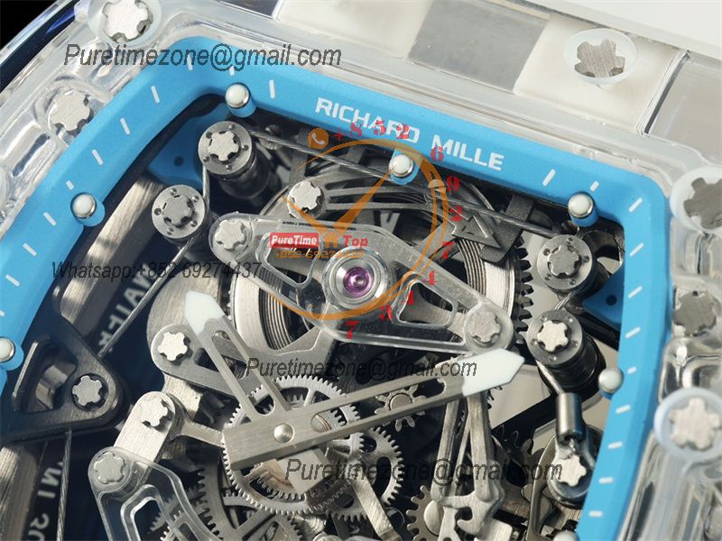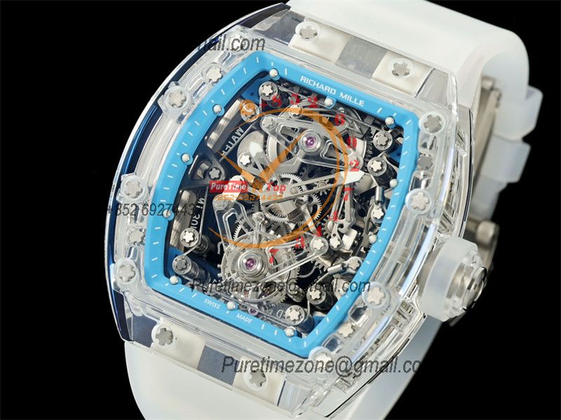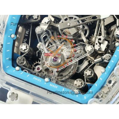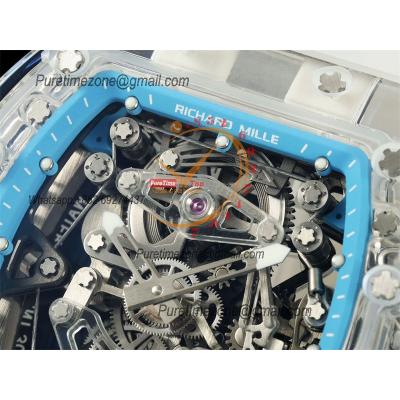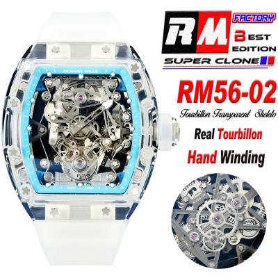 RM56-02 Transparent Real Tourbillon Hand Winding Mens Watch Best Edition RMF Blue Skeleton Dial Transparent Rubber CHS
