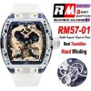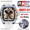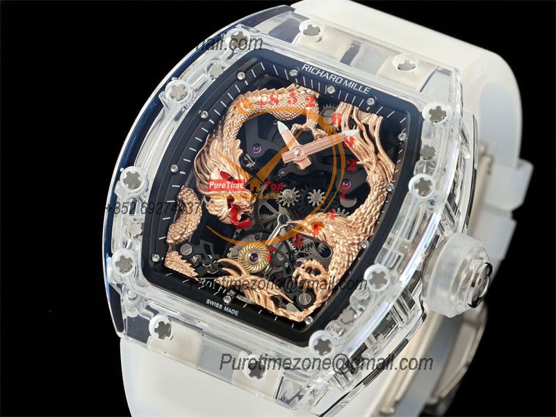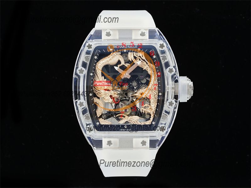 RM57-01 Transparent Real Tourbillon Hand Winding Mens Watch Best Edition RMF Gold Dragon and Phoenix Dial Rubber CHS